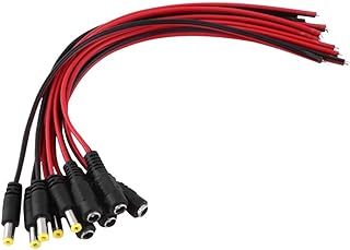 Liwinting 10pcs Câble d'alimentation CC mâle en Queue de Cochon Fiche mâle et Prise Femelle 5.5 X 2.1mm Câble d'alimentation CC Pigtail, pour caméra de sécurité CCTV de Prise d'alimentation CC