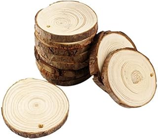 WELLXUNK® Disques Bois Décorations, Tranches Bois Naturel, Noel Cercles Bois, Disques Bois Rustique, Rondelles Bois, avec Trou Cercles en Bois pour Les Décorations Noël, Bricolage, Décoration Fête