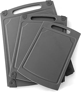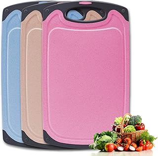 BOCHION Planches à découper, Planche à découper Plastique, Lot de 3 Planches à découper colorées avec Pieds antidérapants und Rainure de Jus, passent au Lave-Vaisselle et faciles à Nettoyer (3 pcs)