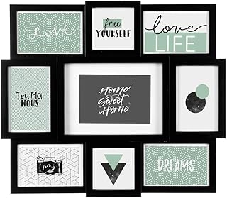 Cadre photo pêle-mêle mural coloris noir capacité 8 photos