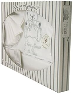 Coffret Parure de draps pour berceau, landau, couffin blanc et gris - Motif Bébé