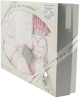 Coffret Parure de draps et Sortie de bain blanc et rose - Je suis le rêve de mes parents