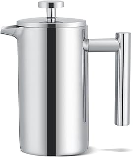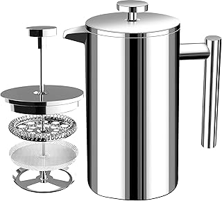 KICHLY (1 L/ 1000 ml) 8 cups Cafetière à Piston | Français presse café Double paroi café & thé En acier inoxydable