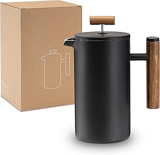 homgeek Cafetière à Piston, French Press 1 Liter/8 Tasses, Cafetière isolée à double paroi, presse à café à filtre à main avec piston en acier inoxydable 304 et filtre de rechange supplémentaire, noir