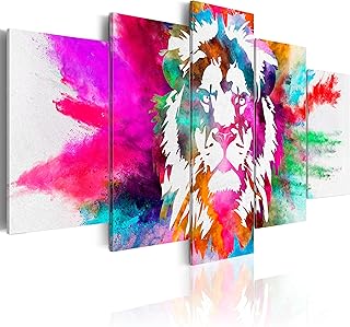 B&D XXL murando Impression sur Toile intissee 200x100 cm cm 5 Parties Tableau Tableaux Decoration Murale Photo Image Artistique Photographie Graphique Abstrait Animal Animaux Lion coloré g-C-0019-b-n