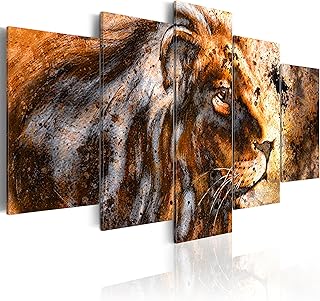 B&D XXL murando Impression sur Toile intissee 200x100 cm cm 5 Parties Tableau Tableaux Decoration Murale Photo Image Artistique Photographie Graphique Animal Animaux Lion g-B-0026-b-o