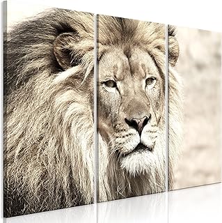 murando Impression sur Toile intissee Lion 120x80 cm Tableau 3 Parties Tableaux Decoration Murale Photo Image Artistique Photographie Graphique Gris Animaux Animal g-B-0075-b-h