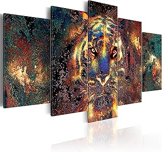 B&D XXL murando Impression sur Toile intissee 200x100 cm cm 5 Parties Tableau Tableaux Decoration Murale Photo Image Artistique Photographie Graphique Animal Animaux Tigre g-B-0024-b-p