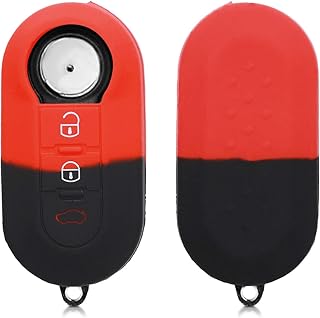 kwmobile Accessoire Clé de Voiture Compatible avec Fiat Lancia 3-Bouton - Coque de Protection Souple en Silicone - Bande de Couleur Rouge-Noir