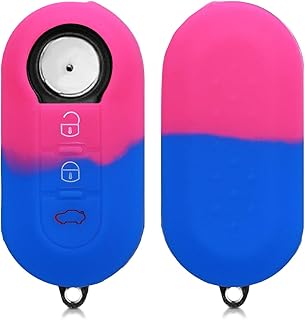 kwmobile Accessoire Clé de Voiture Compatible avec Fiat Lancia 3-Bouton - Coque de Protection Souple en Silicone - Tons Pastel Fuchsia-Bleu