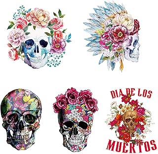 MWOOT 5 Transfert Thermocollant Crâne Fleurs, Autocollant de Patch Ecusson pour Tissus Vêtements Hommes Femmes, Transfert Tissus Patchs Appliqués, Stickers Transfert de Chaleur T-shirt Jeans Sacs