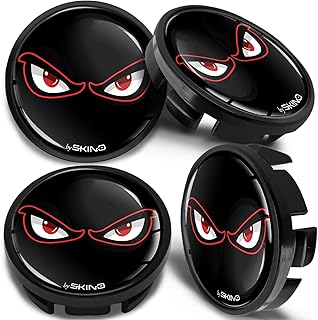 4 x 75mm Cache-Moyeu Capuchons de Centre Enjoliveurs de Roué Voiture Cache Moyeux Jante Alliage Cache-Moyeux Compatible avec Numéro de Pièce B66470207 / B66470200 Noir Argent No Fear Yeux CM 8
