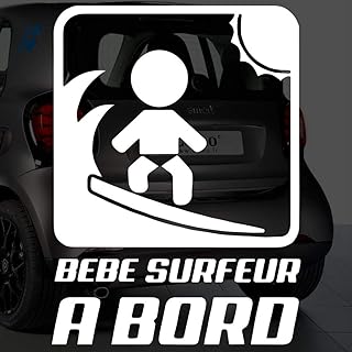Sticker bébé à bord pour voiture Surfeur à bord 20 cm Blanc - Anakiss