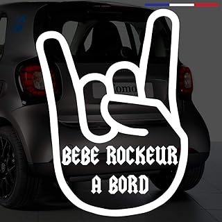 Sticker bébé à bord pour voiture Bébé Rockeur à bord 20 cm Blanc - Anakiss