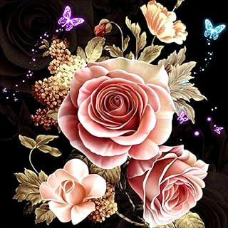 Peinture par numéros pour Enfants, broderie diamant Fleurs roses, Point de Croix mosaïque pour la décoration de la Maison avec Outils et Accessoires Boîte de Rangement -30 x 30 cm