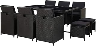 vidaXL Ensemble à Dîner d'Extérieur 11 pcs avec Coussins Mobilier de Jardin Salon de Jardin Ensemble de Salle à Manger Terrasse Extérieur Résine Tressée Noir