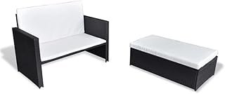 vidaXL Canapé 2 Places de Jardin avec Coussins Canapé de Patio Meuble de Terrasse Sofa de Jardin Balcon Extérieur Noir 124 cm Résine Tressée