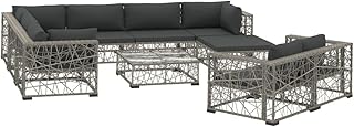 vidaXL Mobilier de Jardin 10 pcs avec Coussins Meuble d'Extérieur Salon de Jardin Mobilier de Terrasse Mobilier de Patio Résine Tressée Gris