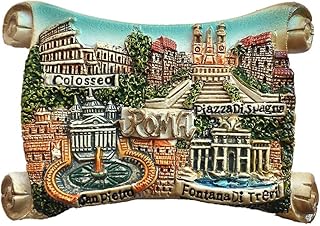 Aimant de réfrigérateur en 3D avec 4 attractions de Rome Italie - Cadeau souvenir - Décoration de maison et de cuisine - Autocollant magnétique de réfrigérateur