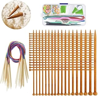 RASHION Lot de 36 aiguilles à tricoter en bambou de 18 tailles + 18 paires d'aiguilles à tricoter circulaires de 18 tailles avec tube coloré + outils de tissage.