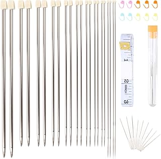 Rmeet Aiguilles a Tricoter, 22 Pack Aiguilles Tricot à Pointes Simples avec Aiguilles à Tricoter en Acier Inoxydable de 11 Tailles pour Crochets carbonisé Faits à la Main pour débutants