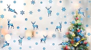 KAIRNE Autocollants de Fenêtre Noël,Noël Flocons de Neige et Renne Fenetre Stickers,NoëL Décoration Stickers,DIY Amovibles PVC Décalcomanie pour Noël Porte Nouvelle Année Vitrine en Verre Déco(Bleu)