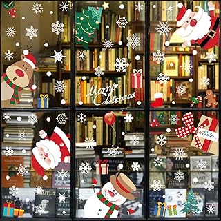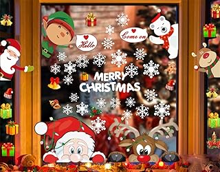 Voqeen Noël Autocollants Fenetre Noël Flocon De Neige Stickers Décoration DIY Fenêtres Stickers Porte De Bonhomme De Neige Santa Autocollant Sapin De Noël Wapiti Amovibles Statique Autocollants
