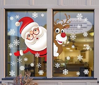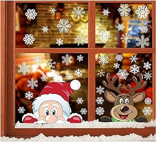 Voqeen Noël Autocollants Fenetre Noël Flocon De Neige Stickers Décoration DIY Fenêtres Stickers Noël Stickers Muraux Porte De Santa Autocollant Wapiti Amovibles Statique Autocollants Décalcomanie