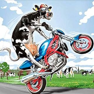 Kit de broderie diamant 5D à faire soi-même pour adultes, kit de broderie diamant à pois 30 x 30 cm (vaches sur une moto)