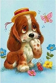 Peinture Diamant 5D à Faire Soi-même avec Motif Chien de Dessin Animé Peinture par Numéro Puzzles pour Adultes Broderie Facile Kit de Broderie au Point de Croix Mosaïque Strass Cadeau 30 x 40cm